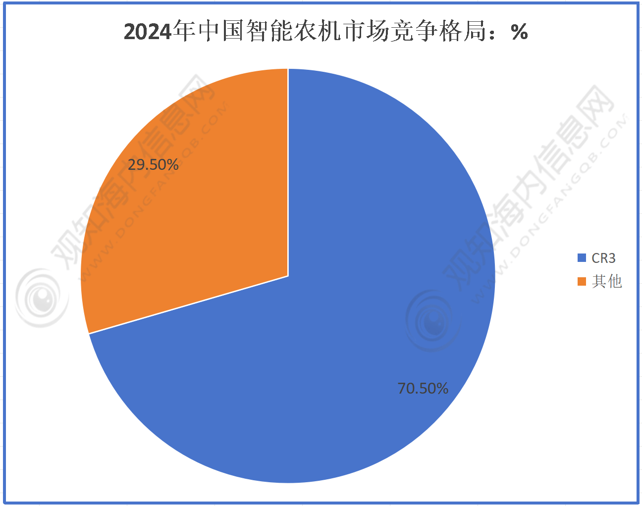 按照数据显示:CR3(行业前三名企业)占比70。50%,其他厂商占比29。50%。可见CR3正在市场中占领从导地位,市场呈现出头部企业集中度较高的款式。