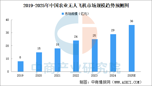 跟着中国农业科技的不竭前进,高效率的功课能力、精准地施药和施肥、削减农做物毁伤等劣势,使得农业无人飞机越来越普遍地被使用于农田办理。按营收计,中国农业无人飞机行业的市场规模由2019年的8亿元增加至2024年的29亿元,年均复合增加率29。3%。跟着无人机正在能源续航、智能化等方面不竭取到手艺冲破,使其可以或许使用于更普遍的场景。制制工艺的成熟也进一步降低了无人机的价钱,推进了无人机的普及。中商财产研究院阐发师预测,2025年中国农业无人飞机行业市场规模将达36亿元。