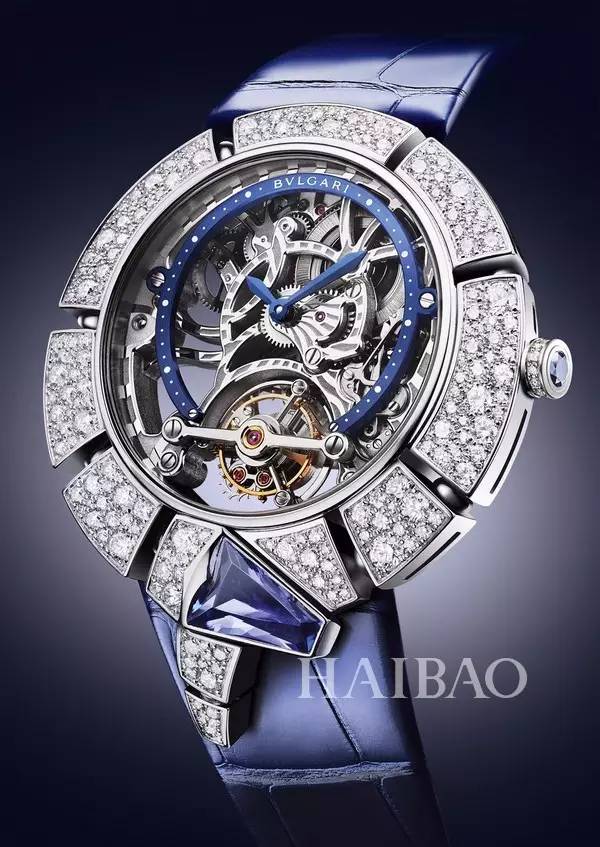 灵蛇是的。2017巴塞尔国际钟表珠宝展上,宝石镶嵌而成的灵蛇环绕纠缠正在圆形表盘之外,蛇头处镶嵌的蓝色宝石取皮质表带相呼应,焕发出文雅的意大利风情。